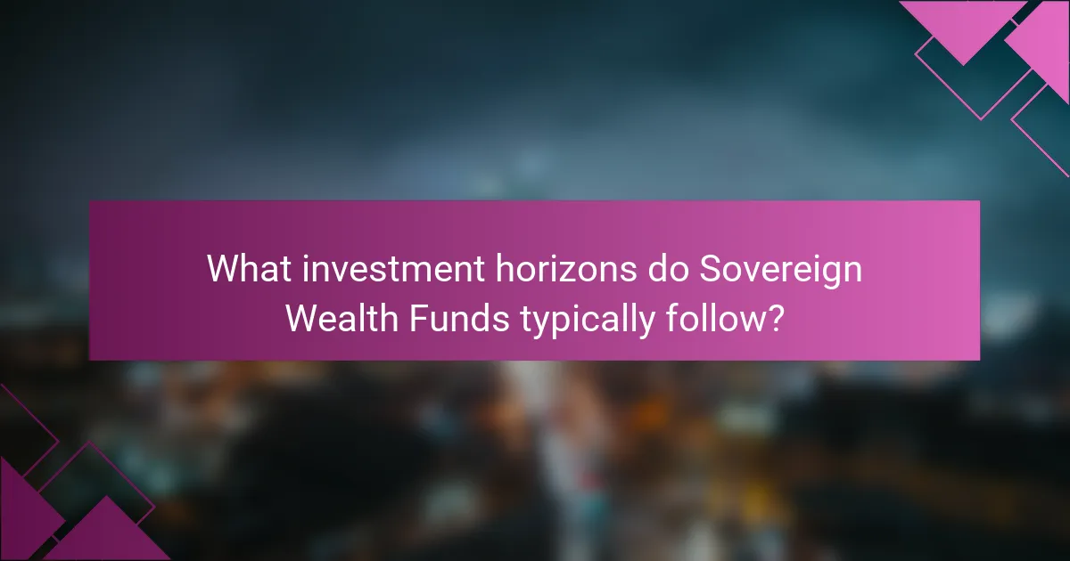 What investment horizons do Sovereign Wealth Funds typically follow?