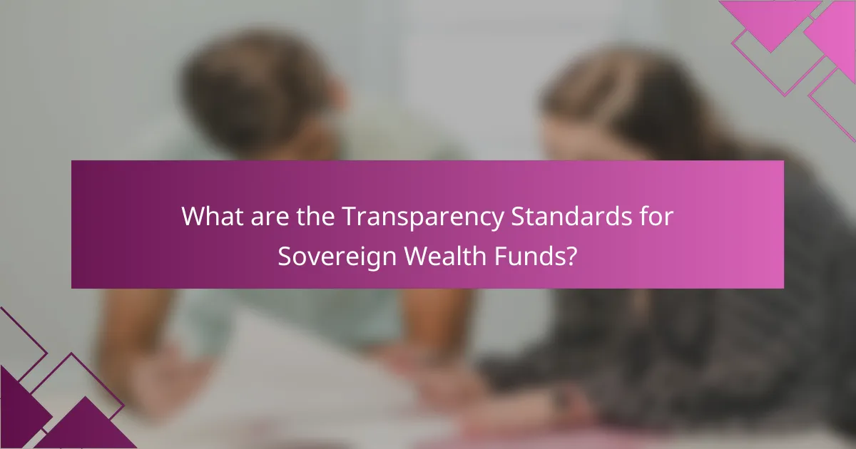 Transparency standards for sovereign wealth funds (SWFs) are guidelines that promote openness and accountability. These standards typically include regular reporting on investment strategies, financial performance, and governance structures. They aim to enhance the trust of stakeholders and the public. The International Working Group of Sovereign Wealth Funds established the Generally Accepted Principles and Practices (GAPP) as a framework for these standards. GAPP emphasizes transparency in operations and decision-making processes. Adhering to these standards can help mitigate risks of mismanagement and promote responsible investment practices. Many countries have adopted these principles to ensure effective governance of their SWFs.