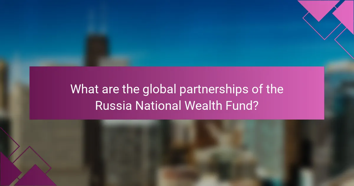 The Russia National Wealth Fund (RNWF) has established global partnerships primarily with sovereign wealth funds and investment entities. Notable partnerships include collaborations with the China Investment Corporation and the Kuwait Investment Authority. These partnerships focus on joint investment projects and co-financing initiatives. The RNWF aims to diversify its investment portfolio through these alliances. In 2021, the RNWF announced plans to invest alongside the Abu Dhabi Investment Authority. The fund also engages with various funds in Asia and the Middle East for strategic investments. These partnerships enhance the RNWF’s global reach and investment opportunities.