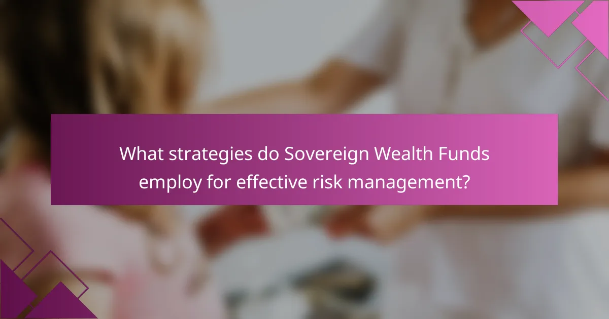 Sovereign Wealth Funds employ several strategies for effective risk management. They diversify their investment portfolios across various asset classes and geographic regions. This diversification minimizes exposure to market volatility and economic downturns. Additionally, they utilize robust risk assessment frameworks to evaluate potential investments. These frameworks include quantitative models and stress testing to anticipate adverse scenarios.