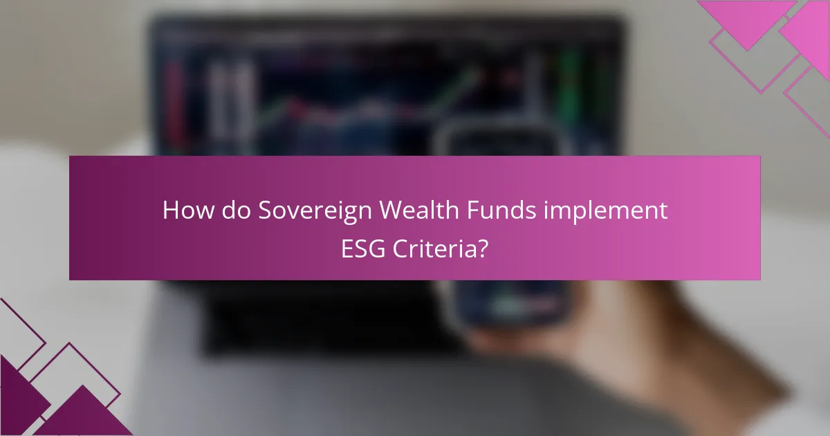 Sovereign Wealth Funds implement ESG criteria by integrating environmental, social, and governance factors into their investment processes. They conduct thorough assessments of potential investments to evaluate ESG performance. Many funds establish specific ESG guidelines that align with their investment objectives. They also engage with companies to promote better ESG practices and transparency. Some Sovereign Wealth Funds utilize third-party ESG ratings to inform their decisions. Additionally, they may participate in collaborative initiatives to enhance ESG standards across industries. Evidence of this approach can be seen in the increasing number of funds publicly committing to responsible investing principles. For instance, the United Nations-supported Principles for Responsible Investment (PRI) has seen participation from numerous Sovereign Wealth Funds, showcasing their dedication to ESG integration.