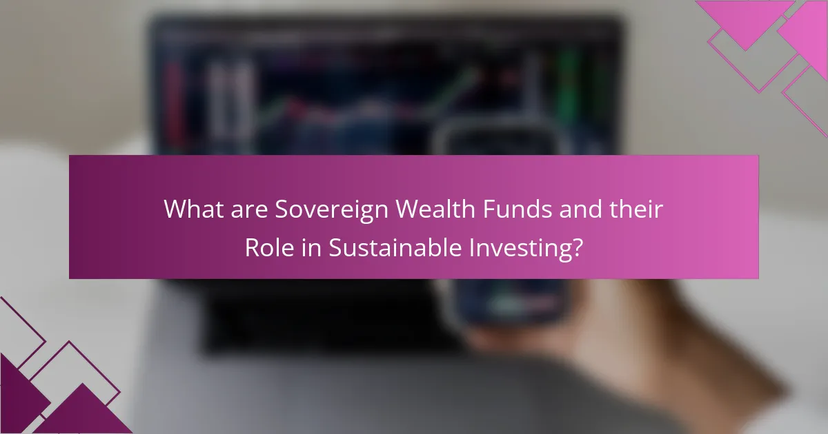 Sovereign Wealth Funds (SWFs) are state-owned investment funds or entities. They manage national savings for the purpose of investment. SWFs invest in a variety of assets, including stocks, bonds, real estate, and infrastructure. Their role in sustainable investing is increasingly significant. Many SWFs incorporate Environmental, Social, and Governance (ESG) criteria into their investment strategies. This shift reflects a growing recognition of the importance of sustainability in long-term value creation. For instance, the Norwegian Government Pension Fund Global emphasizes responsible investment practices. Studies show that integrating ESG factors can enhance financial performance. Thus, SWFs are pivotal in promoting sustainable economic development globally.
