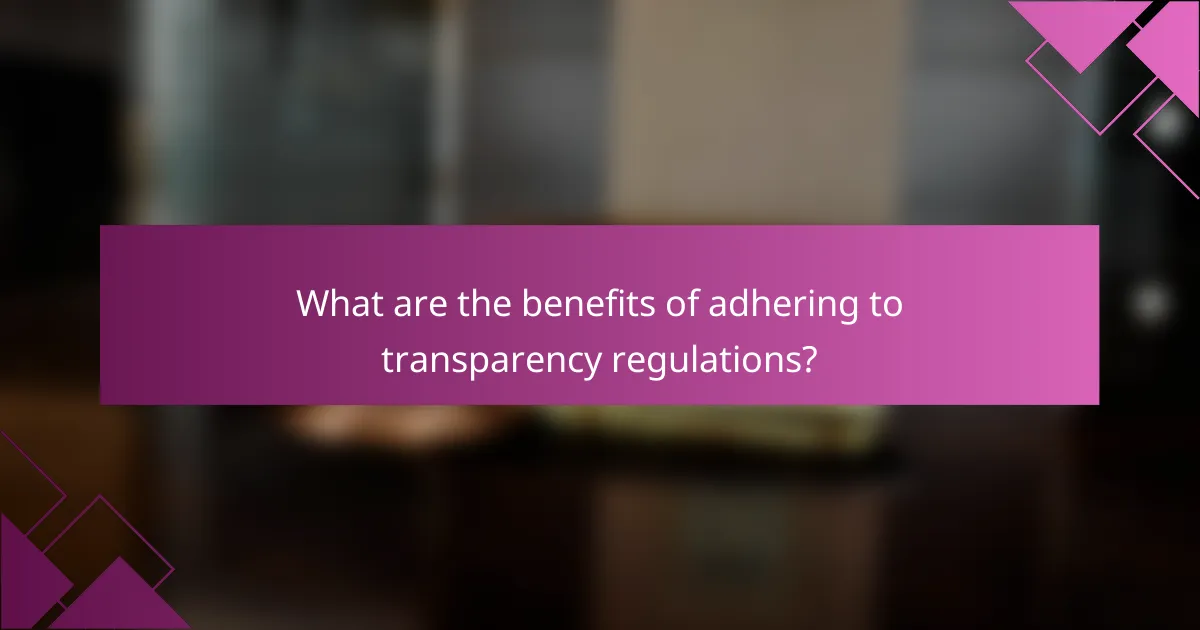 Adhering to transparency regulations enhances accountability and trust in sovereign wealth funds. These regulations require clear reporting on investments and financial activities. Increased transparency can lead to better governance and reduced corruption risks. Research shows that funds with high transparency levels outperform their less transparent counterparts. A study by the International Monetary Fund indicates that transparency improves investment decisions and public confidence. Furthermore, transparent practices can attract foreign investments, boosting economic growth. Overall, compliance with transparency regulations fosters a more stable financial environment.