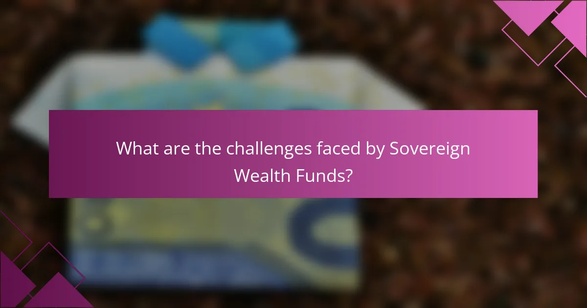 Sovereign Wealth Funds face several significant challenges. These include market volatility, which can impact investment returns. Political risk is another concern, as changes in government policies can affect fund operations. Additionally, transparency and governance issues can lead to public distrust. Currency fluctuations can also pose risks to international investments. Finally, achieving a balance between short-term gains and long-term goals is often difficult. Each of these challenges can hinder the effectiveness and stability of Sovereign Wealth Funds.
