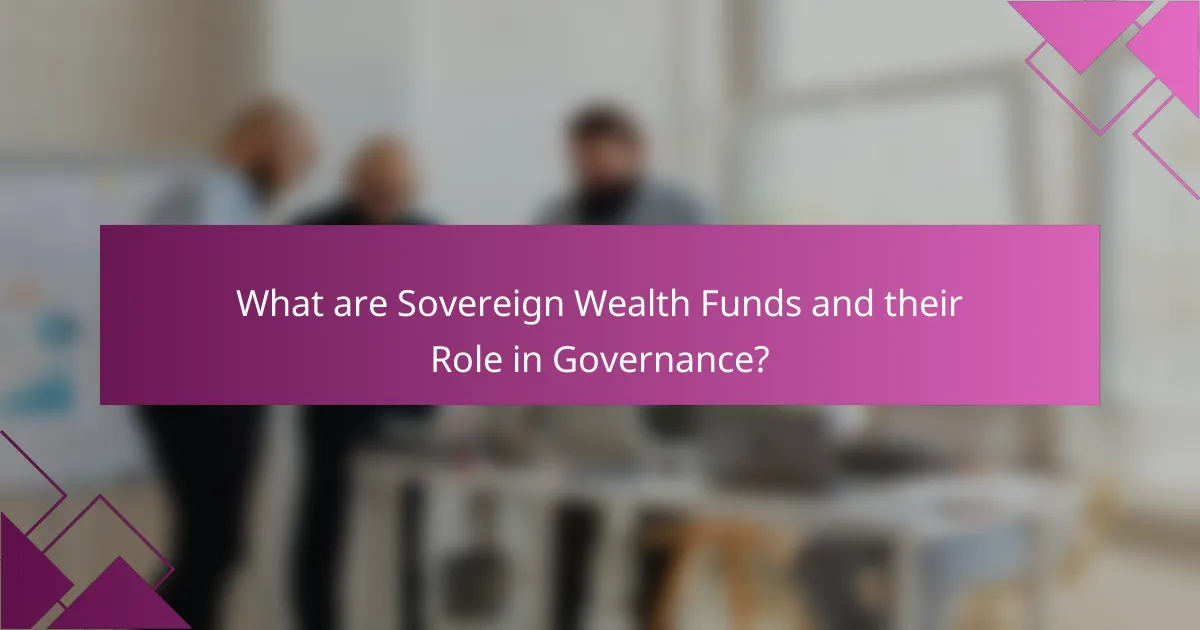 Sovereign Wealth Funds (SWFs) are state-owned investment funds that manage a country’s reserves. They invest in various asset classes, including stocks, bonds, real estate, and infrastructure. SWFs play a crucial role in governance by providing financial stability to nations. They can influence economic policies and promote long-term investments that benefit public welfare. Additionally, SWFs enhance transparency and accountability in government spending. They often adhere to international best practices, which include ethical investment guidelines. According to the International Forum of Sovereign Wealth Funds, adherence to these practices fosters trust and credibility in governance.