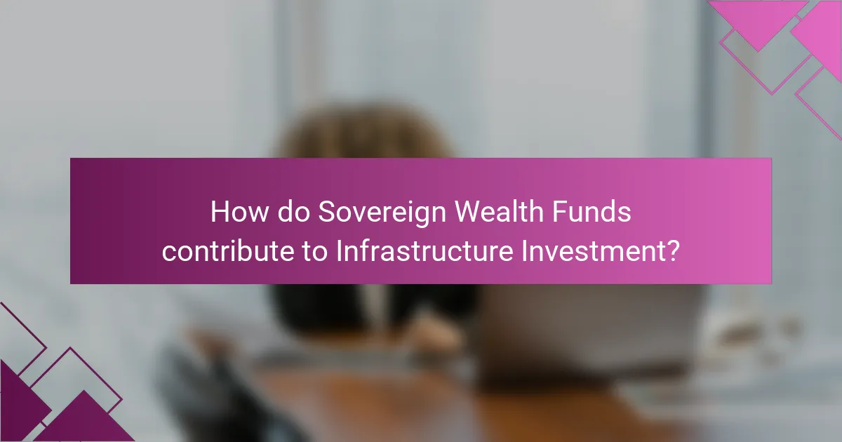 Sovereign Wealth Funds (SWFs) contribute to infrastructure investment by providing substantial capital for large-scale projects. They invest in various sectors, including transportation, energy, and utilities. SWFs often target long-term returns, aligning with the lengthy timelines of infrastructure projects. This investment helps bridge funding gaps in public infrastructure. For instance, according to the International Monetary Fund, SWFs manage over $10 trillion in assets globally. Their investments can enhance economic growth by improving public services and creating jobs. Additionally, SWFs often partner with private investors to leverage expertise and share risks. This collaboration can lead to more efficient project execution and better outcomes for local economies.