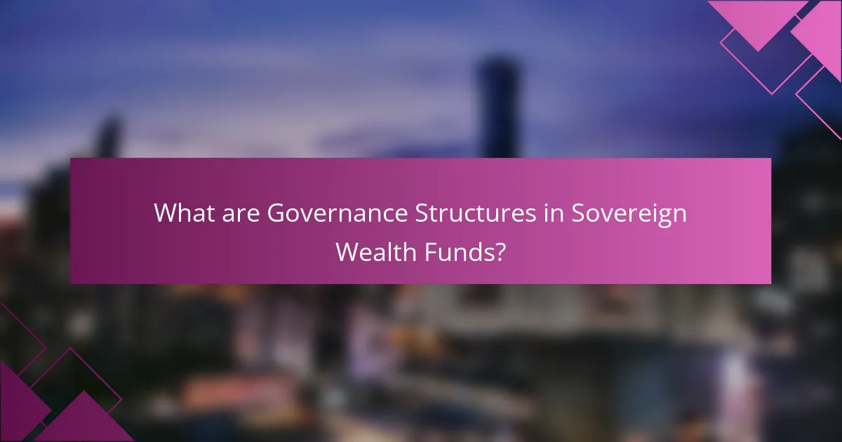Governance structures in sovereign wealth funds (SWFs) refer to the frameworks and processes that guide their decision-making and management. These structures typically include a board of directors, investment committees, and various oversight mechanisms. They ensure accountability, transparency, and alignment with the fund’s objectives. Effective governance structures help in managing risk and enhancing performance. For example, many SWFs adopt practices from corporate governance to improve their operations. This includes establishing clear roles and responsibilities among stakeholders. Proper governance structures are essential for building public trust and ensuring that funds are managed in the best interest of their stakeholders.