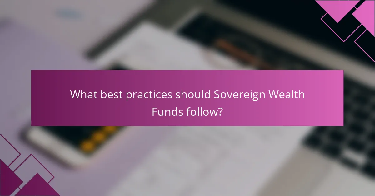 What best practices should Sovereign Wealth Funds follow?